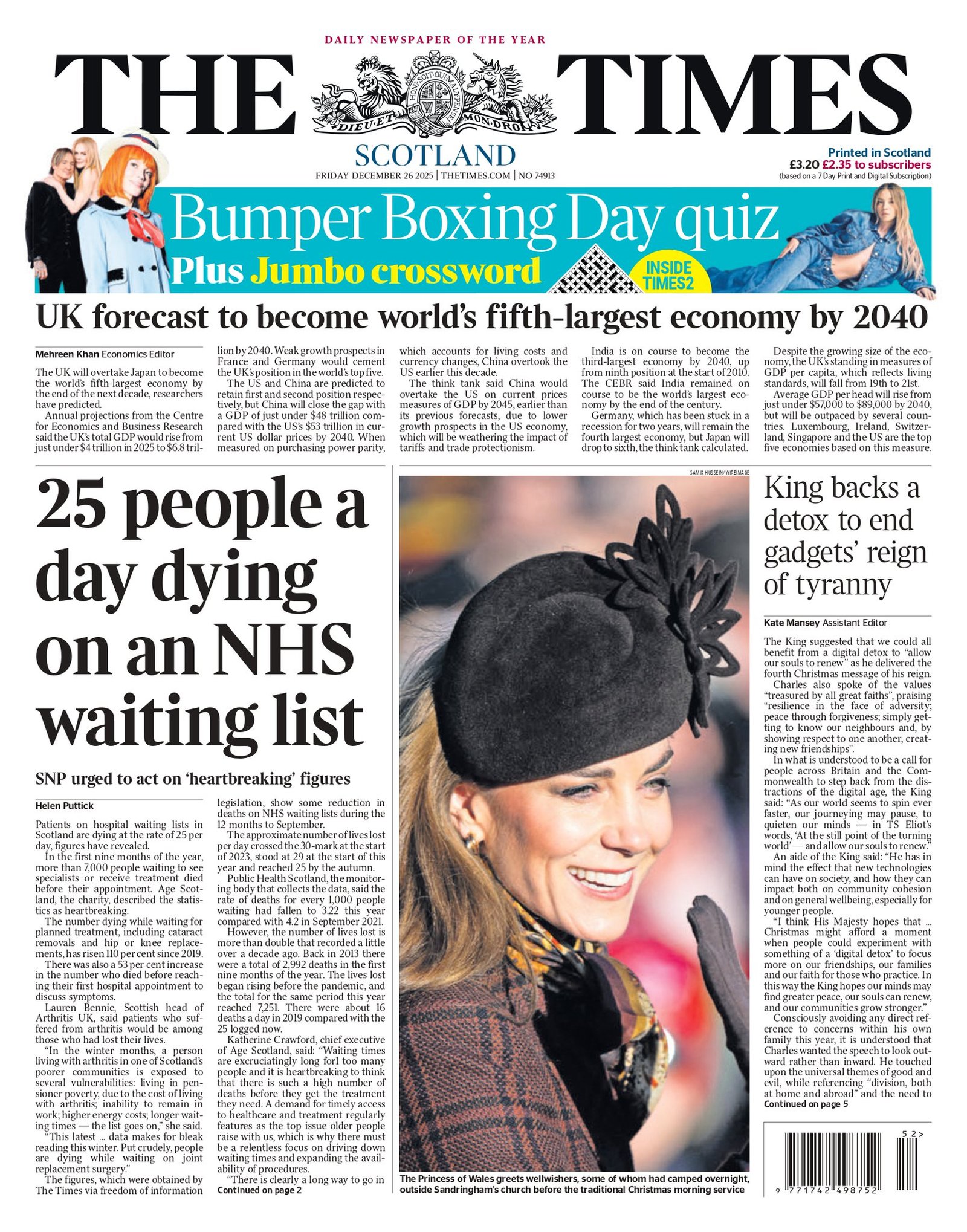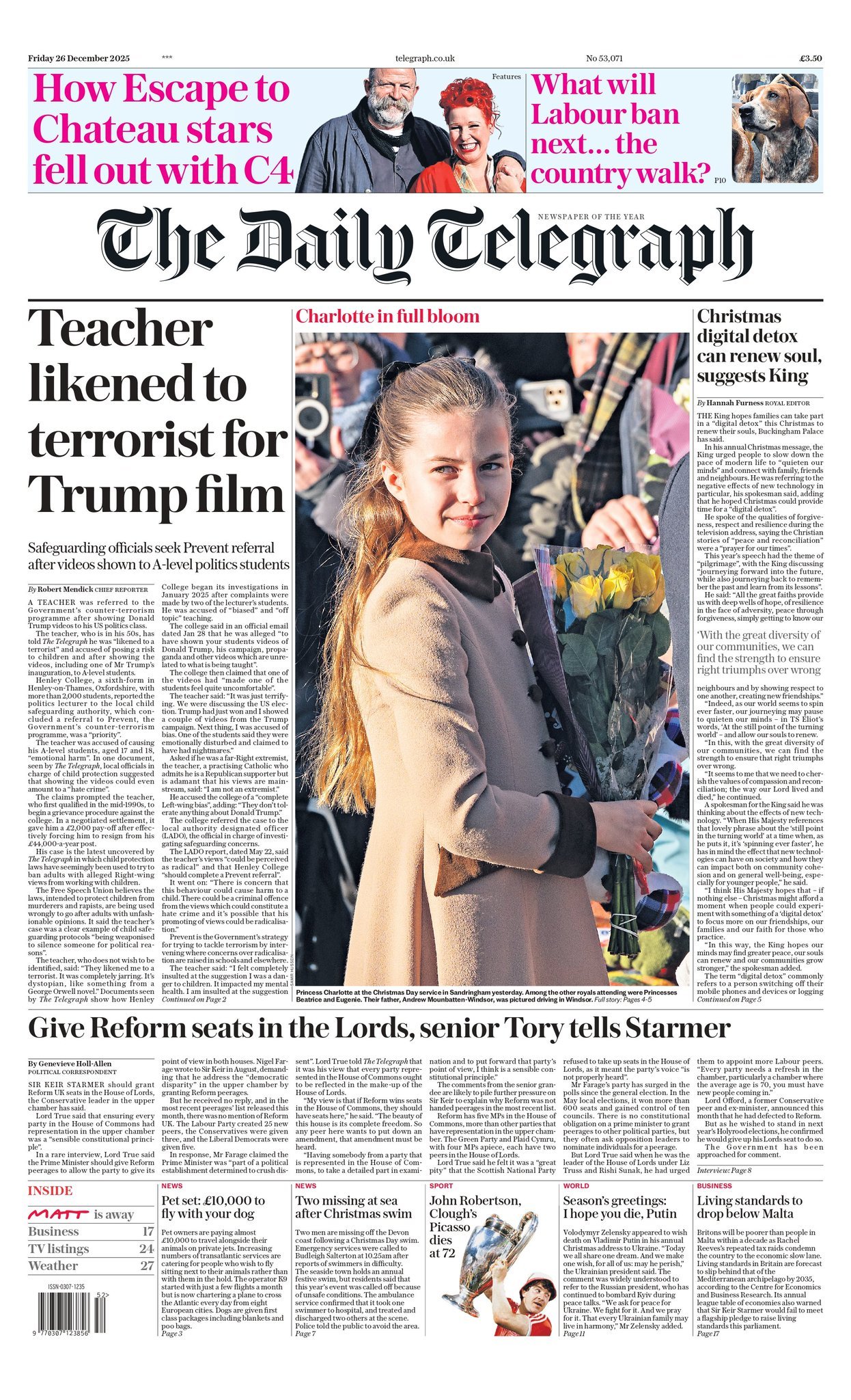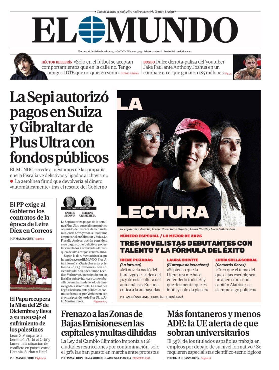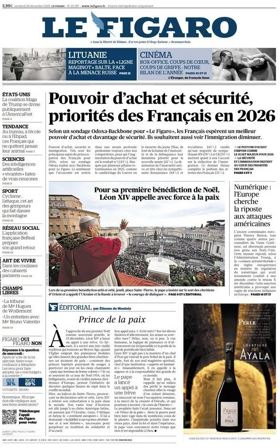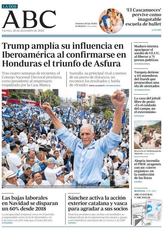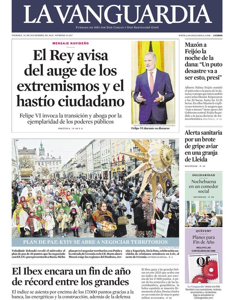 Portadas de la prensa internacional de este viernes 26 de diciembre de 2025