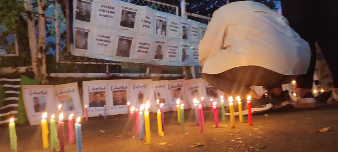 Con carteles, fotografías y velas encendidas, los manifestantes exigieron la liberación de sus seres queridos, algunos de los cuales —según denunciaron— permanecen privados de libertad desde hace meses sin avances en sus procesos.